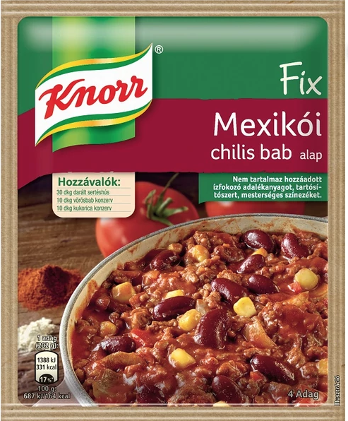 ![]() Knorr Fix Mexikói chilis bab alap € 2.50 |
