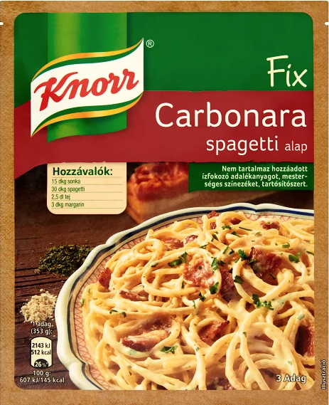 ![]() Knorr Fix Carbonara spagetti alap € 2.50 |